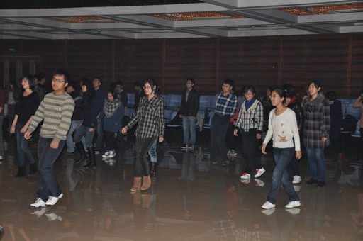 由芸瑾舞协DANCER带来的开场舞“快四”表演,拉开了一场以学舞、跳舞为目的的舞会的序幕。考虑到参加舞会的群体主要是刚刚接触跳舞的初学者,两位舞蹈老师首先选择了简单易学的逛花园,而为DANCER舞蹈倾倒的同学们,积极向领舞学习。在领舞细致、耐心的讲解下,同学们很快找到感觉,伴着优美的音乐,泛起翩翩步伐。在欢快的集体舞结束后,领舞老师又教给现场同学们跳舞的礼节,教会大家邀请舞伴的礼节姿势。现场的男同学们活学活用,很快就利用学到的礼节邀请到自己的舞伴,进入交际舞“慢三”的学习中。正所谓男女搭配,干活不累,一曲“慢三”的结束更是将整个舞会推向高潮,同学们都放开包袱,随着音乐和自己的心情,跳出欢乐,跳出自我,将新世纪学生党员青春活力的一面完全展现出来。之后,集体舞“阿拉伯之夜”的学习带动了现场每一位同学,简单而飘逸的步伐,动感而震撼的舞点,给同学们心中留下深深的印象。最后,一曲“兔子舞”在欢快活泼的气氛中为舞会画上了一个圆满的句号,而结束时同学们热烈的掌声,既是对领舞者最真诚的感谢,又是对度过这样一个喜悦轻松夜晚的感叹。