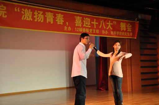 此次舞会,将正式的党支部立项活动以欢快愉悦的方式呈现出来。每位同学都可以参与进来,现学现跳,点燃大家对舞蹈的喜爱之情。同学们带着期望参加,带着喜悦离去,他们跳得尽兴、跳的豪放。这次舞会的成功举办,为工大材料学子添上了绚丽的一笔。而在舞会上,大家飘逸灵动的青春身影也正是12硕铸锻党支部全体成员向党的十八大胜利召开的献礼。