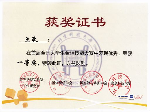 我校学生通过参与实验技能的比拼和竞争,提高了金相的相关操作技能,深化了专业知识,在竞争中提高了水平,加强了实践动手能力,提高了实践探索的自信。而在竞赛过程中我校学生所展示出的较高的专业技能水平和良好的个人素质,也很好地展示了我校的风采,为我校赢得了荣誉。