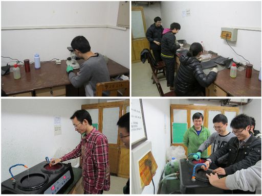 比赛中,一个博士生与一个硕士生或本科生分为一组,在比赛前交流制作金相试样的经验,并练习制样技巧。比赛时由硕士生或本科生动手,在规定时间内制备金相试样最多的为优胜。最终,课题组博士生朱莹莹及硕士生徐付超获得了最终胜利。