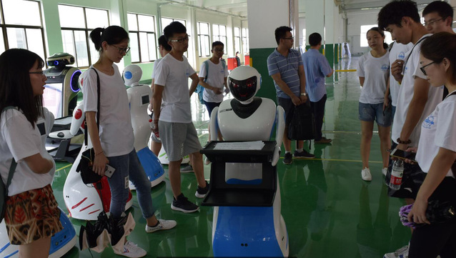 午饭后,实践团一行人参观了哈工大机器人集团的厂房,指导老师和工程师们向我们详细介绍了机器人的用途以及原理,并通过与餐饮服务机器人和迎宾机器人这两款机器人实际接触,以及简单操作,使我们激发了对机器人的兴趣,对其有了不少的了解。