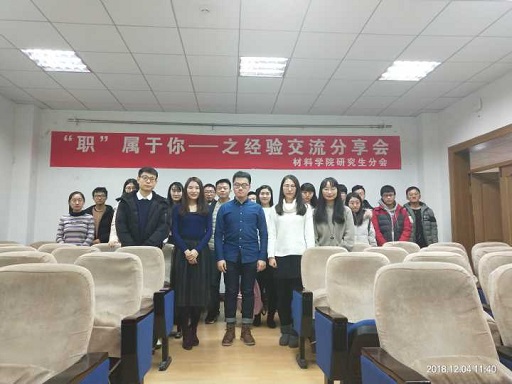 为了更加全面地服务即将面临求职的同学们,使大家对求职过程有更加清晰的认识,提前了解面试流程、面试技巧,为职业选择做好规划,材料学院研究生会联合17硕党员服务站于2018年12月3-4日圆满完成了“职”属于你之求职经验交流分享会活动。