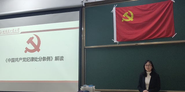 11月4日晚18:30分,材料-能源-人文-外国语-数学学院入党积极分子培训班第五讲在正心11进行。材料学院党委副书记张弛老师给大家进行了《中国共产党纪律处分条例》(下文简写为《条例》)的解读。