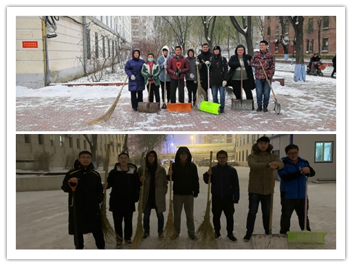 小组同学分别在诚意楼教室、实验室、邵馆会议室进行了卫生清扫,桌椅整理,协助公寓阿姨整理并分发洗净的被品,其中第二和第四小组在二公寓门口开展了扫雪活动,他们从公寓阿姨那里借来扫雪装备,顶着严寒进行清雪,同学们积极劳动,分工有序,清理了二公寓前门大面积的积雪,出色地完成了志愿服务工作,赢得了宿管阿姨的称赞。志愿服务活动激励学员们无私奉献,坚定全心全意为人民服务的初心,活动结束后,各组都进行了活动分享。石泽昊同学表示:“清雪活动方便了同学的出行,也让大家体会到了属于劳动者的光荣。我们应该多参与各种志愿活动,在志愿中弘扬奉献精神,在奉献中感受劳动的快乐,在劳动发现自身价值,升华自身价值。”张蔚同学对于“如何践行新时代新青年”进行了分享,她认为应该在做好本职工作的同时,多为同学,为社会服务。吴涛同学认为作为新时代社会主义建设者,应当敢为人先,甘于奉献,不计个人得失,要不忘初心,牢记使命,为祖国建设奉献自己的力量。
