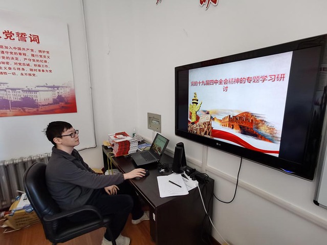 11月25日下午,材料学院18级焊接硕士生第一党支部在材料楼628进行“不忘初心、牢记使命”主题教育和党的十九届四中全会精神学习,支部全体党员参加会议,党支部书记王继明做会议主持。