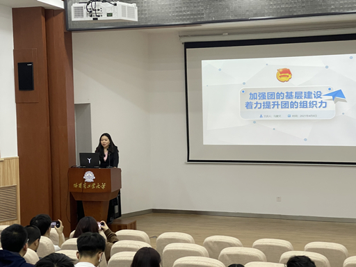 马慧文从自身工作经历引入,讲述了团干部应当如何开展工作,讲解了团的性质、基本任务、团的使命、行动指南、基本原则与基本任务等团的基础知识,勉励团员青年应时刻保持先进性、光荣感。随后,她帮助团干部明确本学期团支部的工作主线,要求各团支部以强化团的基层建设整体质量为总体目标,发挥团支部战斗堡垒,在多维度、多领域开展团支部活动,切实服务团员青年成长成才。