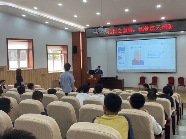 活动伊始,范杨老师介绍了央企与十二军工集团、航天科工与三零六所的主要型号任务,让同学们对航天院所的职责和航天人肩负的使命有了进一步的了解。随后范杨老师介绍了中国“两弹一星”的先驱钱学森院士的先进典型事迹,让同学们进一步感受航天精神。钱学森老先生以国为重,家为轻,科学最重,名利最轻。5年归国路,10年两弹成。开创祖国航天,他是先行人,披荆斩棘,把智慧锻造成阶梯,留给后来的攀登者。他是知识的宝藏,是科学的旗帜,是中华民族知识分子的典范。范杨老师最后激励所有党员:“这个时代,什么时候还能出现钱学森?钱老先生的精神,是我们不断努力的目标”。