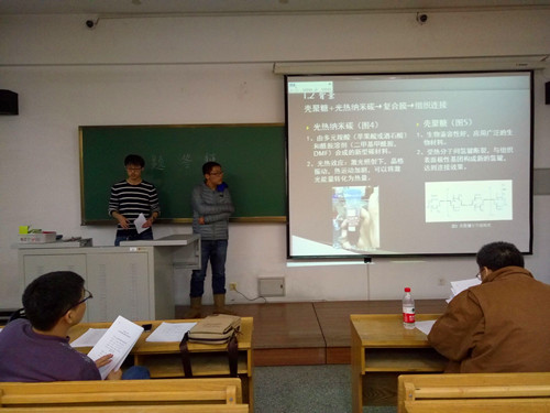 在为期一年的创新创业计划中,同学们广泛查阅文献资料、不断完善实验方案、认真分析实验数据、取得了令人满意的成果。答辩由PPT展示和评委老师提问两个环节组成,首先各小组的代表结合PPT就课题背景、研究意义、项目内容和项目成果等方面对自己的项目进行了全面细致的介绍,然后接受评审老师的提问。同学们在项目实施过程中所表现出来的分析问题和解决问题的能力得到了老师们的赞许,严谨细致的科研态度得到了评审老师们的一致肯定。同时老师们也针对各个项目的特点,做出了详细的点评,如项目研究内容的创新性,实验过程的合理性,项目成果的应用性等,使参与答辩的同学们收获良多。