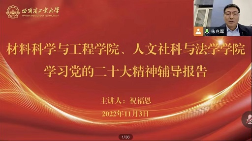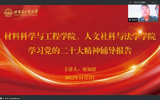 11月3日晚,赌博网站推荐 党委、人文赌博网站推荐党委联合邀请黑龙江省委宣讲团主讲教师、省委党校原副校长祝福恩教授为两院师生作党的二十大精神辅导报告,本次学习通过线上腾讯会议方式举行,赌博网站推荐 党委书记朱兆军主持辅导报告。