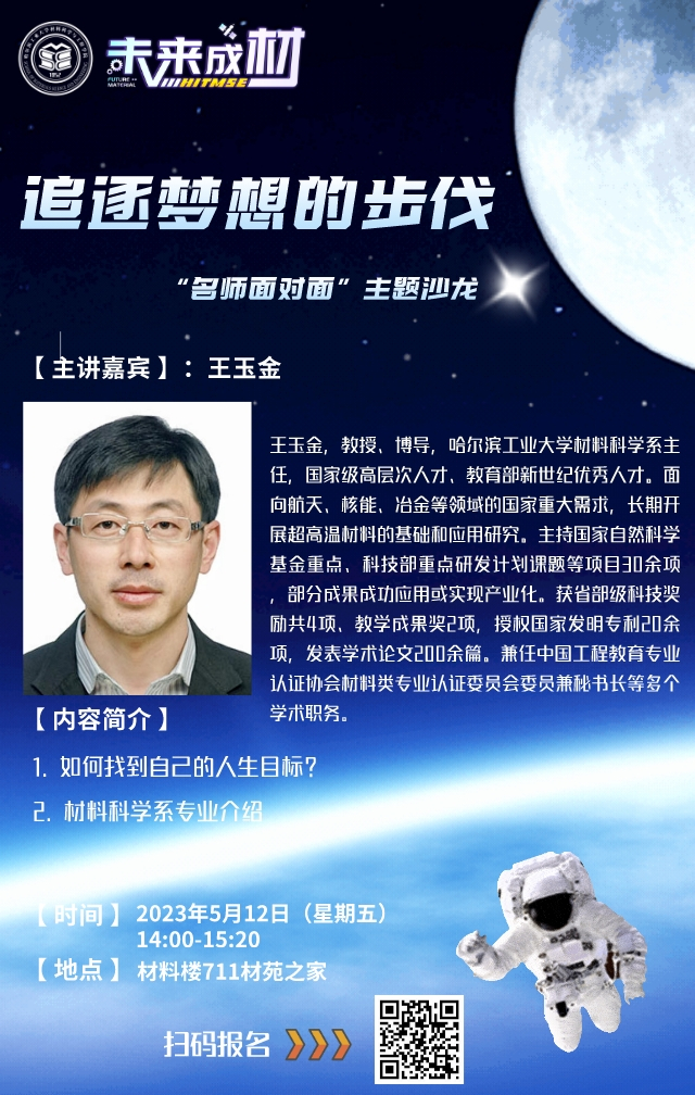 你是否想领略材料之美,感悟材料之蕴?你是否想探索先进材料,助力航天强国?你是否想走进材料前沿,勇攀科学高峰?赌博网站推荐 特面向未来技术赌博网站推荐学生推出“未来成材”主题沙龙活动,邀请名师学长与你面对面畅谈,一同走进材料的奇妙世界。