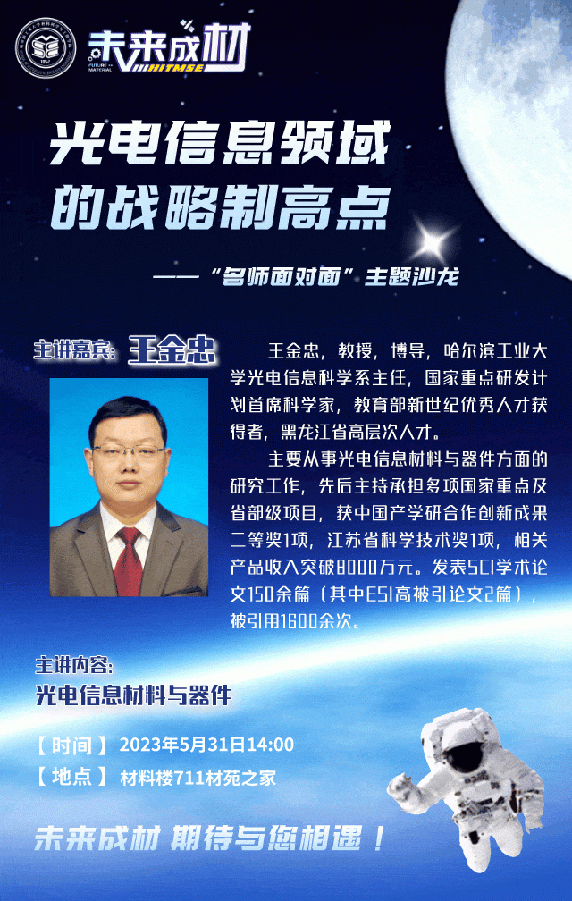 你是否想领略材料之美,感悟材料之蕴?你是否想探索先进材料,助力航天强国?你是否想走进材料前沿,勇攀科学高峰?赌博网站推荐 特面向未来技术赌博网站推荐学生推出“未来成材”主题沙龙活动,邀请名师学长与你面对面畅谈,一同走进材料的奇妙世界。