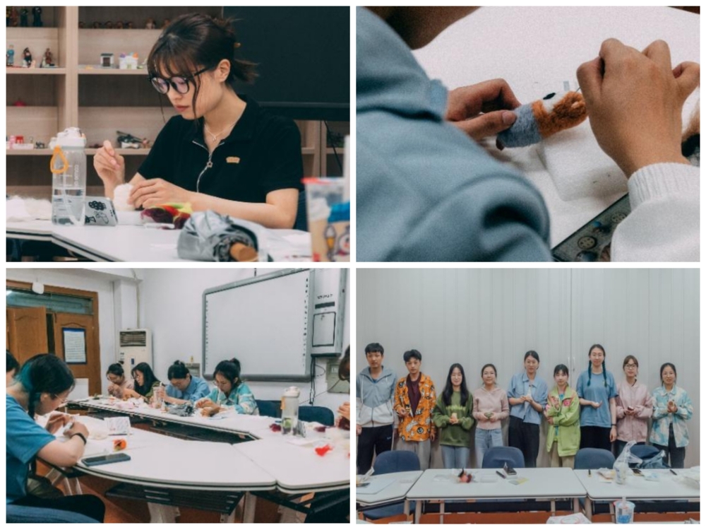 “心戳戳乐”活动在材料楼324顺利举办,同学们使用工具戳在纤维上,使其结合在一起形成毛毡,做成3D的立体作品,过程简单有趣。同学们耐心而专注,享受着一个作品从自己手中慢慢成型的过程,感受到内心的宁静与淡然。