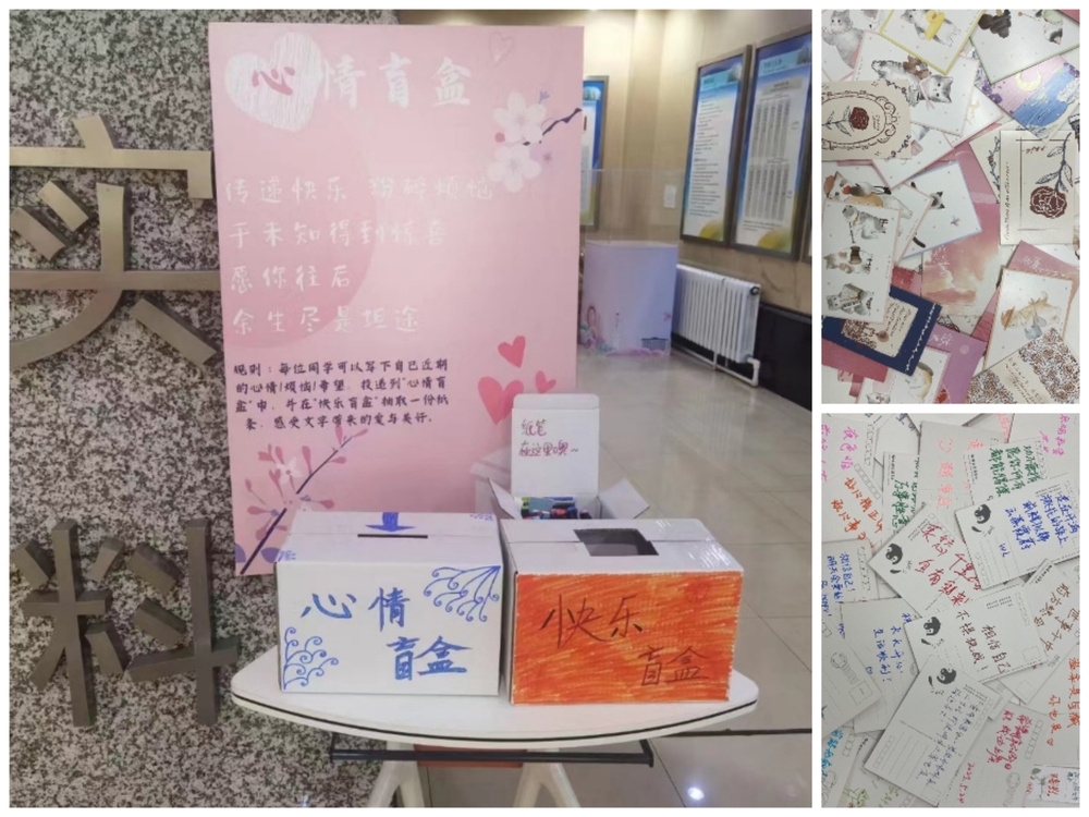 “心情盲盒”活动在材料楼大厅顺利举办,主办方在材料楼大厅放置盲盒和模板卡片,吸引同学们的目光。正值毕业季,许多同学留下毕业时的祝愿,对未来的向往,对陌生人的祝福,也丢弃了此时的烦恼。