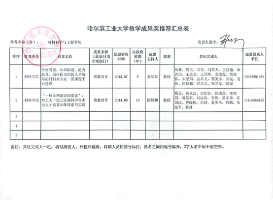 根据《赌博网站推荐 教学管理中心关于开展2023年度校级教学成果奖评审工作的通知》(校教管本〔2023〕8 号)的有关规定,材料科学与工程赌博网站推荐对拟申报哈工大2023年教学成果奖的材料予以公示。具体安排如下: