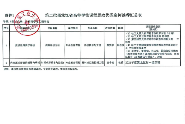 材料科学与工程赌博网站推荐第四批校课程思政示范课程和教学团队培育项目及第二批黑龙江省本科高校课程思政优秀教学案例申报材料公示通知