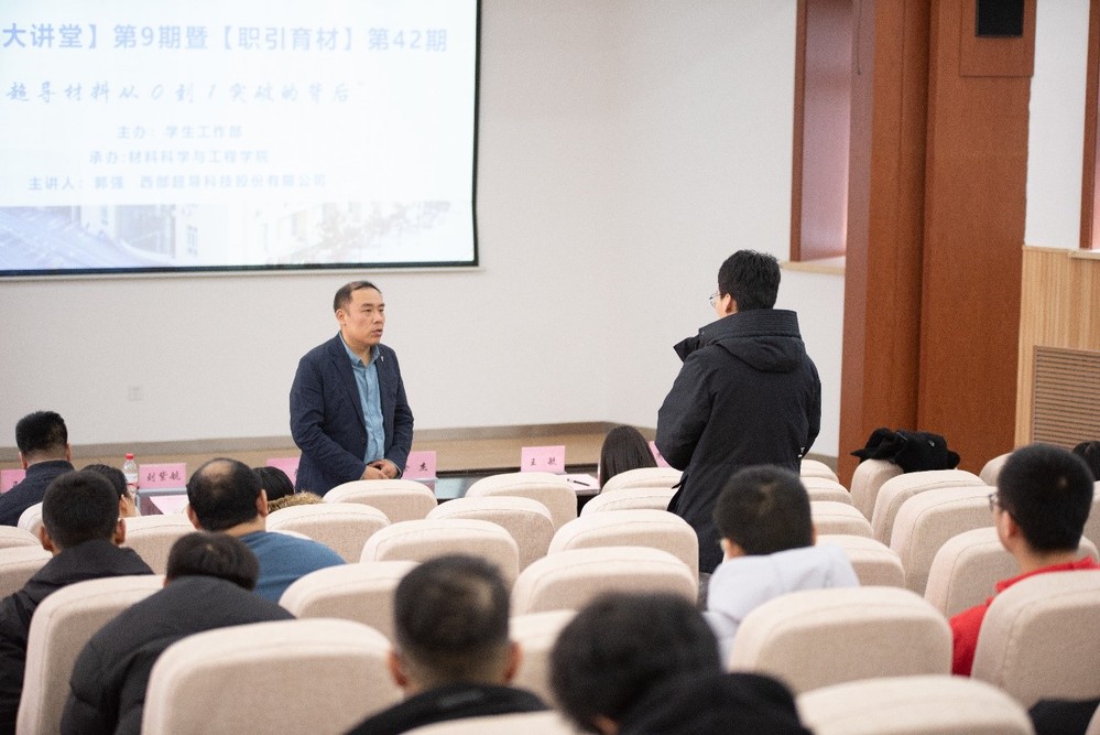 为全面学习贯彻习近平新时代中国特色社会主义思想,激发学生学业和职业生涯规划的自主性,2024年3月11日,材料科学与工程赌博网站推荐锻压博士生第一党支部与西部超导材料科技股份有限公司在邵馆205开展了“中国超导材料从0到1突破背后”专题党课。本次党课邀请赌博网站推荐 校友、国家卓越工程师团队带头人、西部超导公司副总经理郭强主讲,赌博网站推荐 副院长徐杰教授、院长助理宋欣益、专业教师刘紫航教授、就业负责人刘欣雨、党建负责人姚喆峰出席。