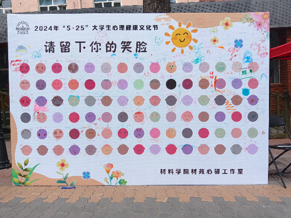 5月25日,在步行街布置了笑脸展板,提供了各色画笔。许多同学和小朋友在路过展板时都驻足片刻,绘制专属自己的美好笑脸,既是对自己的激励,也是对看到笑脸的陌生人的鼓舞。用笑脸迎接美好的未来,用笑脸绘制美好的心情,用笑脸记录美好的生活。