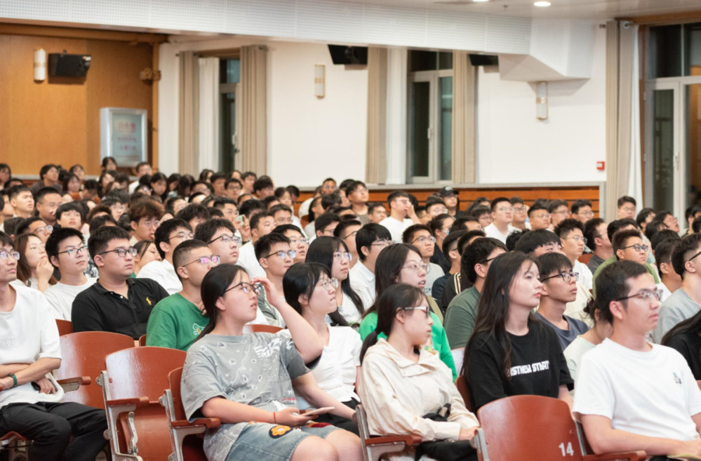 的历史沿革与发展,提到我们正处于科技创新的浪潮之巅,鼓励新生们肩负起把祖国建设成为世界科技强国的使命。希望同学们在未来的科研生涯中能够用研究行动充实自己,用创新方法提升自己,成为堪当民族复兴重任的时代“尖兵”。
