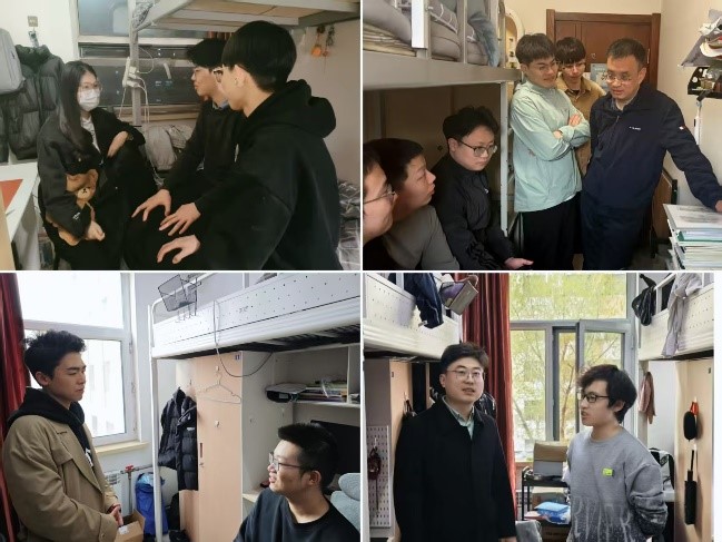 为充分了解学生假期动向,全面做好关心关爱,4月29日至30日,赌博网站推荐 辅导员韩卓、姚喆峰、李月、张一楠、田雨晴、孙萌及各年级、各专业班主任代表陈德志、修子扬、丁鑫、范成磊、张伦勇,分别深入走访学生寝室、实验室。提醒学生完成离校备案,做好假期出行安全提醒,结合假期期间退改签机票诈骗案例开展反诈宣传教育,并针对个人发展规划、毕业设计进展、实验推进情况等近期学生重点关注事项展开交流。