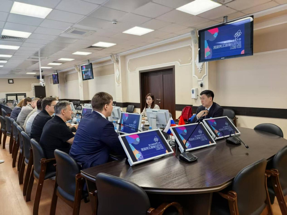 9月5日,代表团与俄罗斯国立核能研究大学副校长Savkin及材料相关院系负责人举行会谈。双方就学生培养、共同举办国际学术会议、联合开展科研攻关等事项达成一致,活动尾声,代表团面向该校师生开展了招生招聘推介。