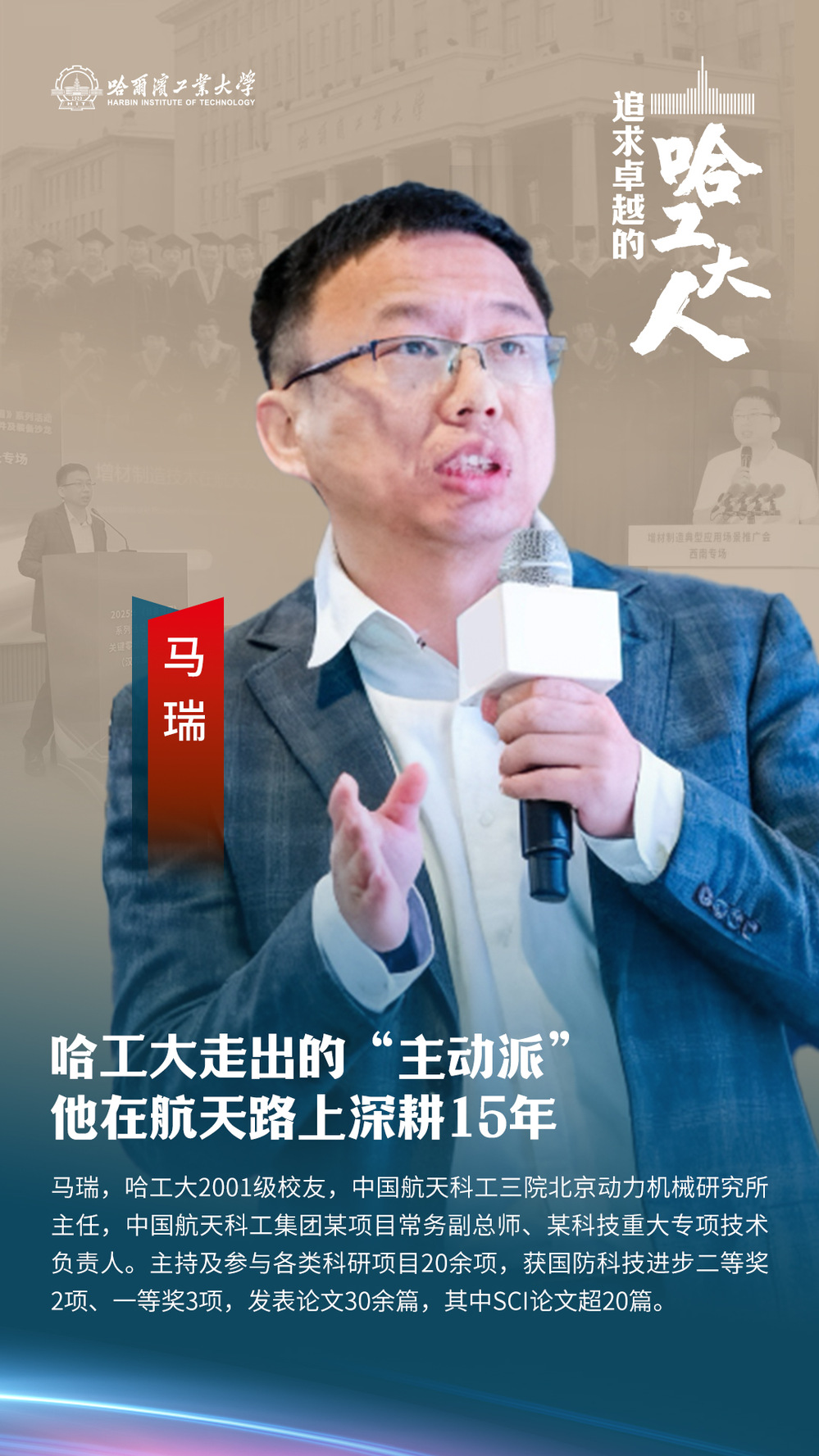 在中国航天科工三院(以下简称“三院”)提到北京动力机械研究所马瑞主任,同事们总会用一个词来形容他——“主动派”。15年来,他带领团队完成了多项关键技术攻关,主持及参与各类科研项目20余项,获国防科技进步二等奖两项、一等奖三项,发表论文30余篇,其中SCI超20篇。今天我们一起走近哈工大2001级材料科学与工程赌博网站推荐校友马瑞,听他讲从一名初出茅庐的年轻博士,到成长为国家重大专项项目常务副总师、国家重大专项项目技术负责人的故事。