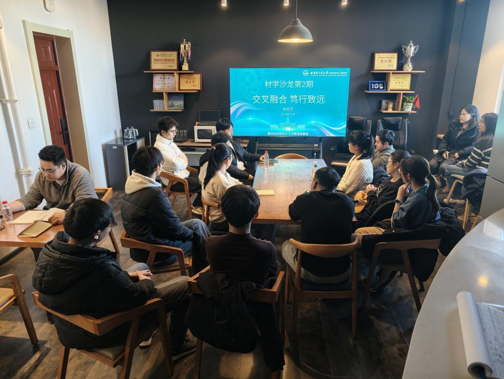 2025年12月29日中午,材料学院研究生会学术部在材料楼711会议室举办了第二期“材学沙龙”小型学术交流会。本期沙龙以“交叉融合,笃行致远”为主题,聚焦青年科研工作者的多维探索,特邀入选我校“春雁英才计划”留校师资,我院博士后、副研究员、硕士研究生导师朱钰可作为分享嘉宾。