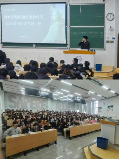 高睿作了思想政治教育与综合素质培养专题讲座,他围绕爱校荣校、网络文明、保密安全、法治教育等多个方面,结合硕士生科研学习特点,通过制度宣贯、正反面案例分享、典型事迹宣讲等形式作详细讲解,引导学生强化思想自觉、严守纪律底线,在毕业季坚守学术诚信、维护学校形象,展现材料学院研究生的良好风貌。